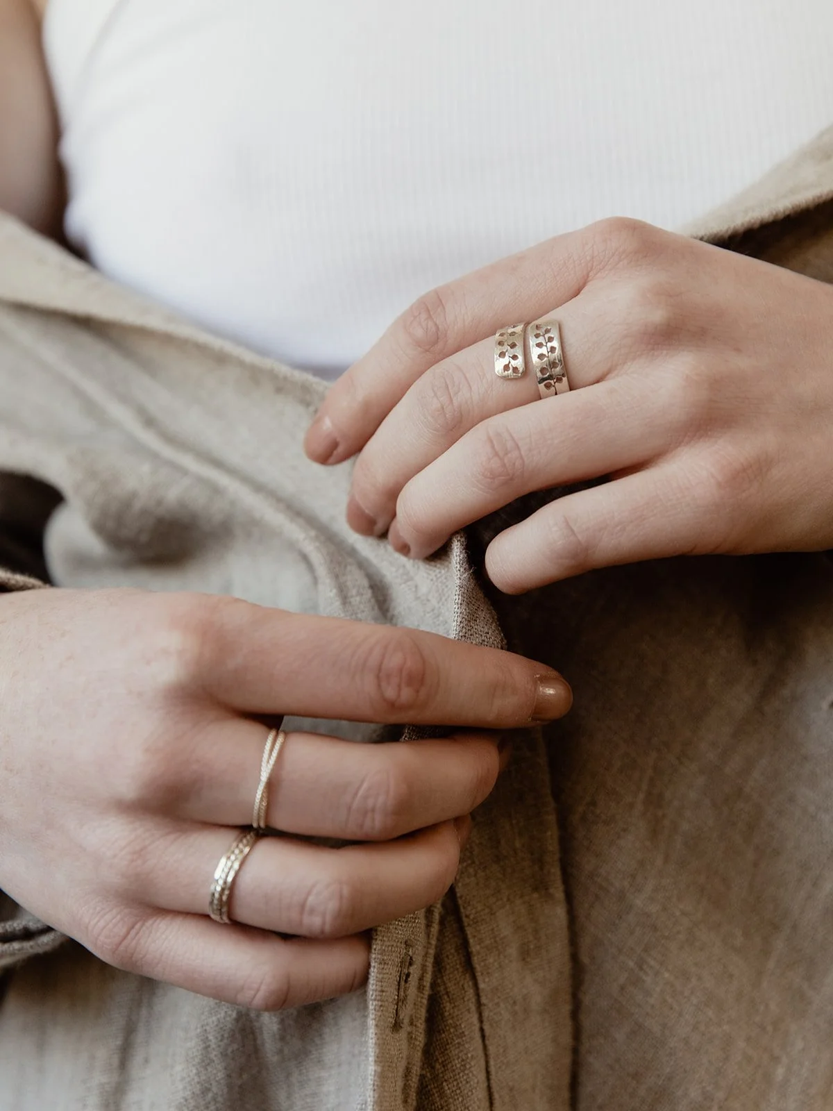 Loops’ beautiful Fern Ring is dedicated to this quintessential Island plant. Jill’s created this intricate hand-cut fern frond design to honour the fern’s beauty. The ring’s overlapping band style makes it easy to size and comfortable to wear. The fern collection offers this graceful design in rings, earrings, cuffs, and necklaces. Jill hand cuts each one so that they are truly distinctive and meaningful to the wearer.